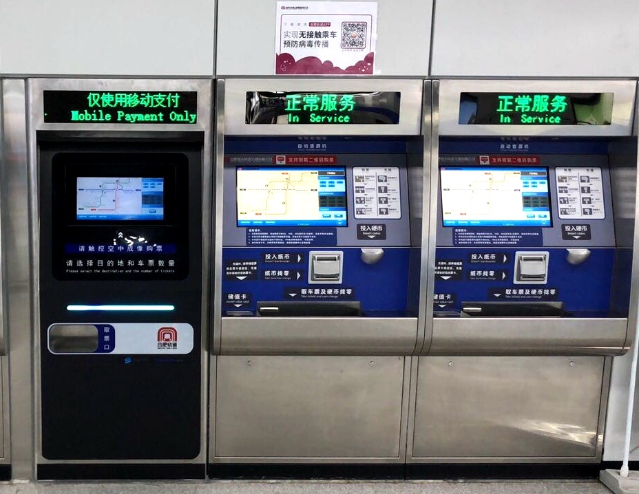 【合肥轨道交通消息】6月11日,合肥地铁2号线汽车西站投入“无接触式”地铁自助售票机投入使用,乘客直接点击空中的自动售票机操作画面,即可完成购票、付款等功能,实现“无接触”购票。